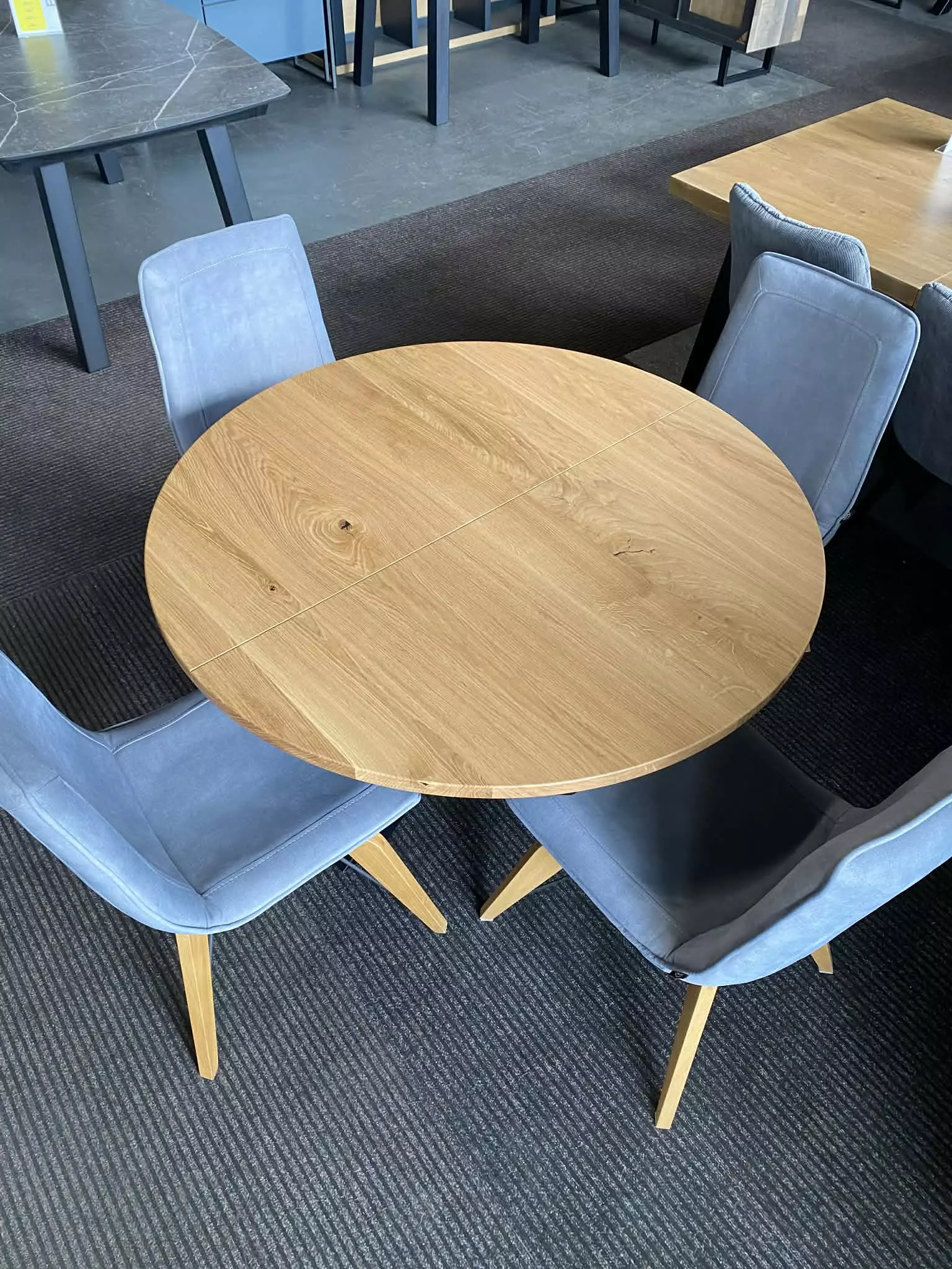 Stół okrągły dębowy KESTO 120×120 +40 cm (rozkładany półautomatycznie)